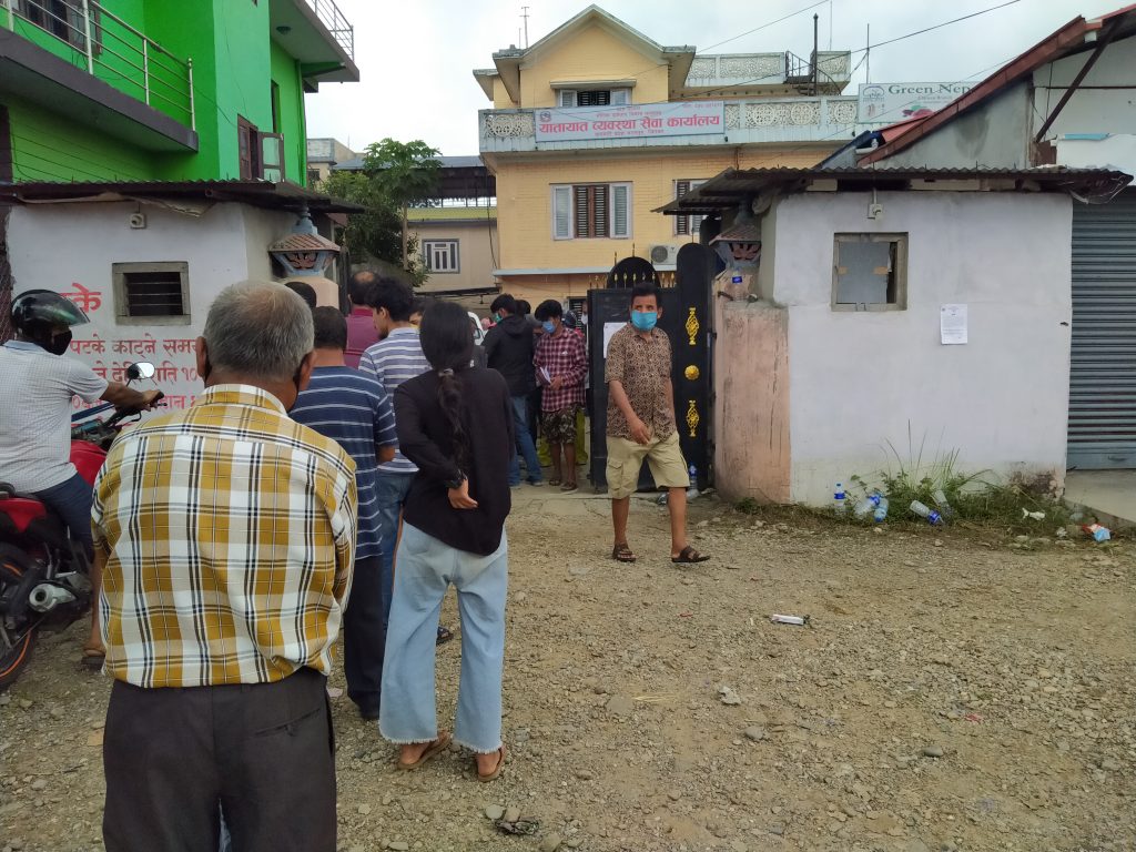 मोटरसाइकलको कर तिर्न आउनु भएको रोशन काफ्लेले भन्नु भयो ‘यही कामले आएको छु अब अर्को दिन कसरी आउने, आजै तिरेर जानु पर्ने छ ।’ आफूले मात्र दुरी कायम गरेर हुदो रहेनछ अर्कोले आएर पालो मिचेर अगाडि जान्छ कसरी पछि बस्ने उहाले भन्नु भयो ।