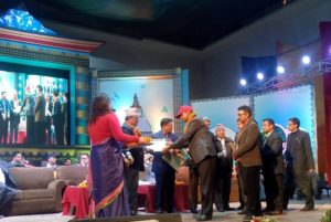 पत्रकार महासंघको केन्द्रीय साधारणसभामा सम्मानपत्र ग्रहणगदै चितवन अध्यक्ष राधेश्याम खतिवडा ,