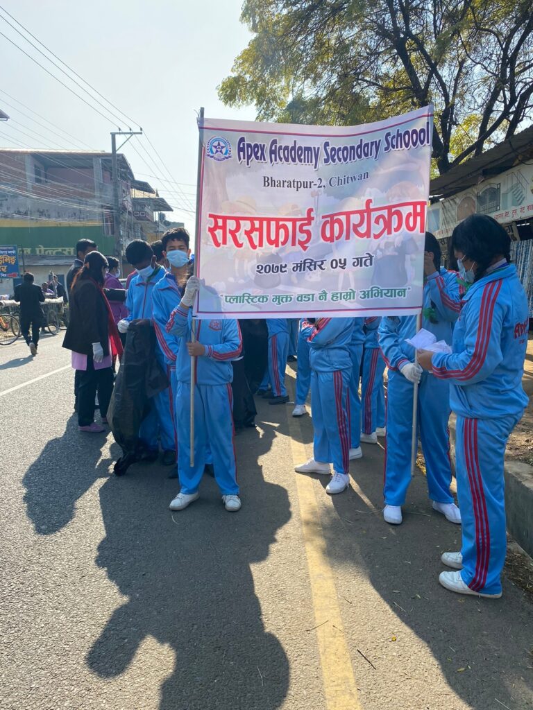 एपेक्स एकेडेमीको आयोजनामा भएको प्लाष्टिकजन्य वस्तु नियन्त्रण मार्फत अभियानको सुरुवात गरिएको हो । उक्त सरसफाई कार्यक्रम‌मा वडा नं २ का वडाध्यक्ष मनोज रानाभाट, महानगरका नगर प्रहरी एकेडेमीका प्राचार्य दिनेशचन्द्र पुरी, शिक्षक तथा विद्यार्थीहरूको सहभागीता रहेको थियो ।