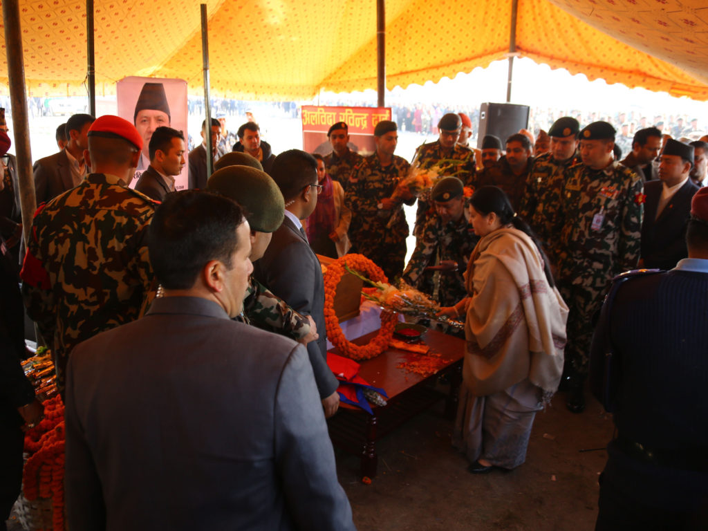 दिवङ्गत मन्त्री अधिकारीसहित सातै जनाप्रति श्रद्धाञ्जलिका लागि उहाँहरुको शव आज बिहानदेखि टुँडिखेलमा राखिएकोे छ । (रासस)