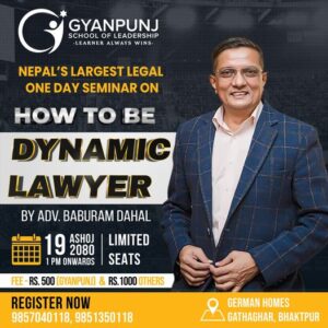 काठमाण्डौं १८ असोज । काठमाण्डौंको नयाँ वानेश्वरमा रहेको ज्ञानपुञ्ज स्कूल अफ लिडरसिपले कसरी उत्कृष्ठ वकिल बन्न सकिन्छ भन्ने विषयमा एकदिने