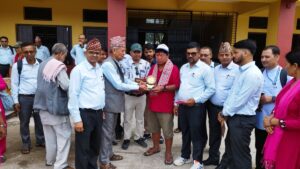 गैंडाकोट १६ असार । सामाजिक कार्यमा सक्रिय आविश्कारक महावीर पुन आफ्नो किताब बिक्री गर्न गैंडाकोटको कालिका नमूना माध्यमिक विद्यालयमा आइपुग्नु