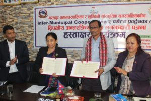 चितवन १९ मंसिर । भरतपुर महानगरपालिका र लुम्बिनी साँस्कृतिक नगरपालिकाबीच पर्यटन प्रवद्र्धन गर्ने उद्देश्यले बुधबार दुईपक्षीय सम्झौता भएको छ ।